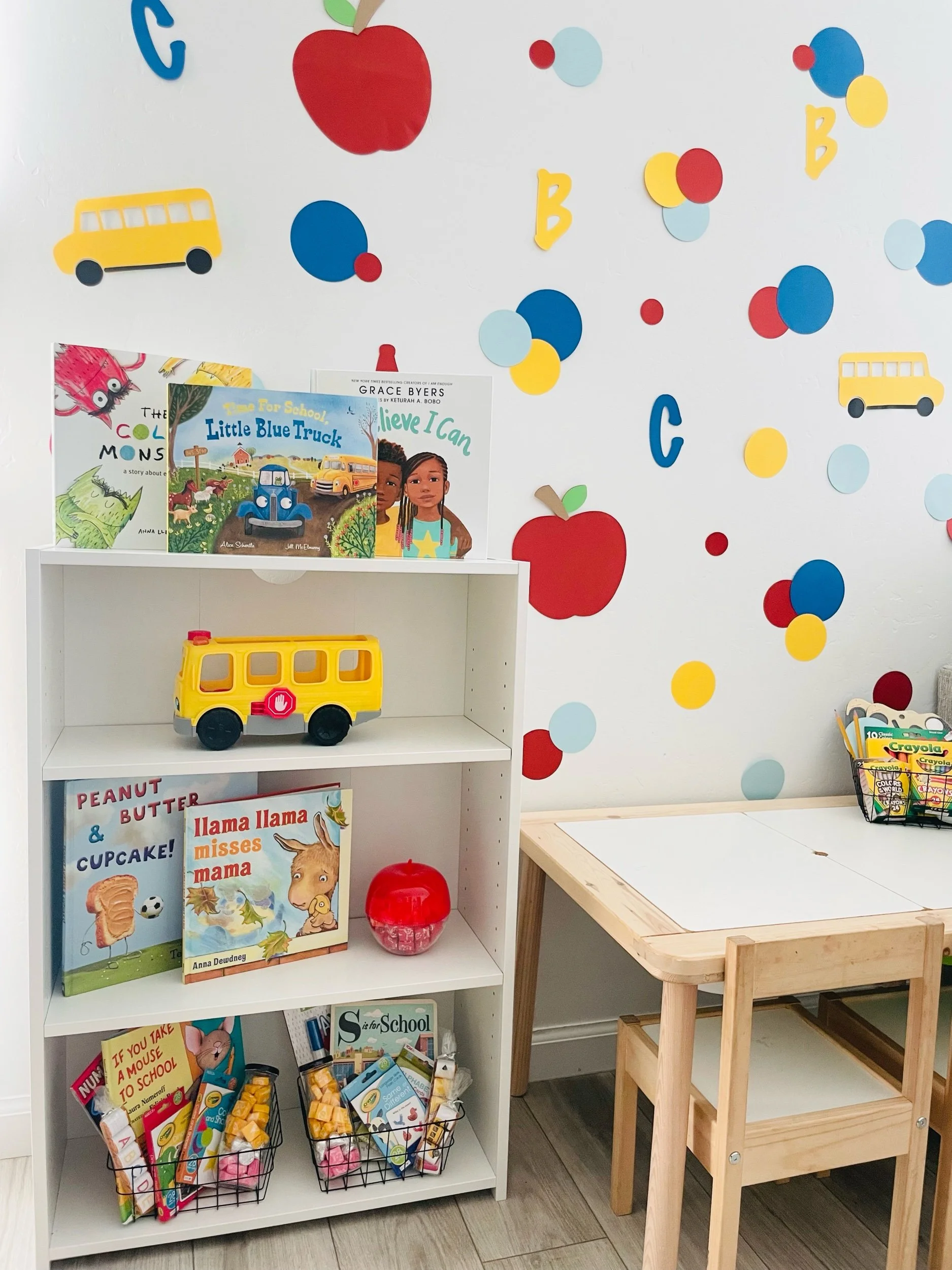 Decorate Their Workspace: Whether it's a designated study corner at home or their desk at school, involve your child in decorating their workspace with colorful stationery, inspiring quotes, and their artwork. This personal touch can help them feel more connected to their learning environment. Since my oldest is still in preschool, we did an ABC themed background for our back to school celebrations. If you have a cricut, feel free to make the same background using my cut file, here.